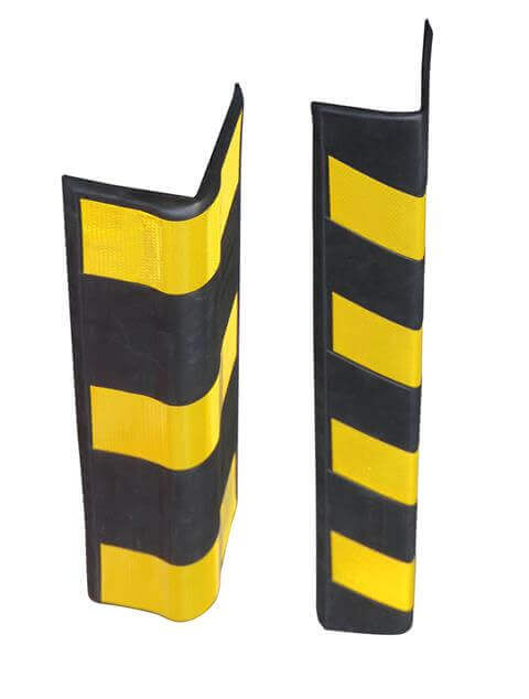 Kauczukowe zabezpieczenie narożnika używamy na naroża ścian lub naroża filarów. Narożnik ochronny zabezpiecza krawędź, ponieważ nie dopuszcza do bezpośredniego kontaktu podczas ewentualnego uderzenia pojazdu czy maszyny w ruchu. Ochraniacz kauczukowy wykonany jest w barwie żółto-czarnej o sprawia , że pełni on również funkcję ochronną ostrzegając na przykład o elementach obiektów znajdujących się w skrajni ciągów komunikacyjnych.